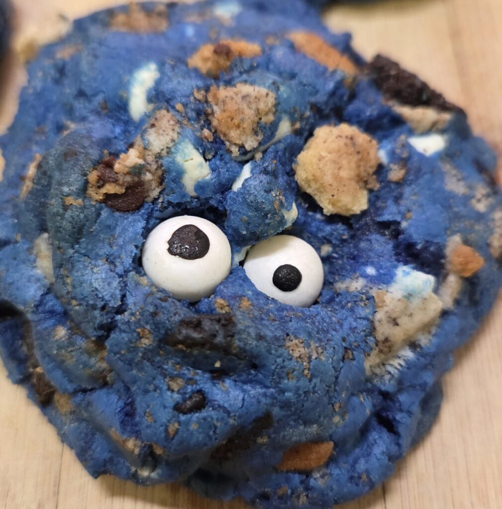 These Cookie Monster Cookies are bright blue, ultra-soft, and packed with mix-ins—white chocolate chips, chopped Oreos, and cookie pieces in every bite. They bake up thick, chewy, and bakery-style, making them perfect for kids’ parties, birthdays, or anytime you want a fun, over-the-top cookie. Customize the mix-ins and add candy eyeballs on top for the full Cookie Monster effect!